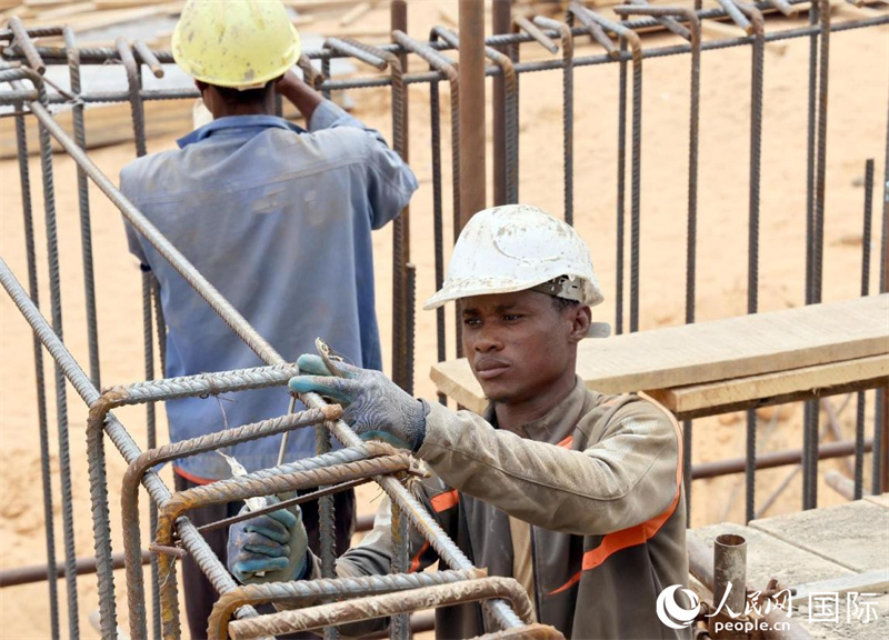 一名工人在捆扎鋼筋。人民網(wǎng)記者 管克江攝