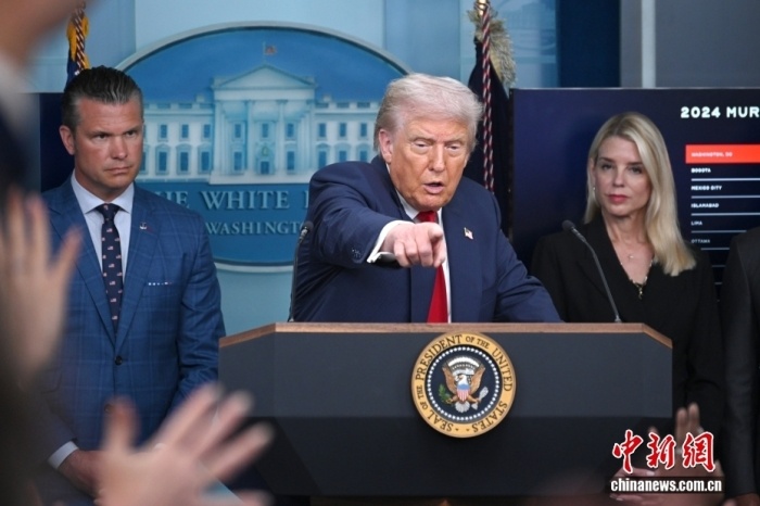 當(dāng)?shù)貢r間8月11日,華盛頓,美國總統(tǒng)特朗普在白宮召開記者會。中新社記者 陳孟統(tǒng) 攝