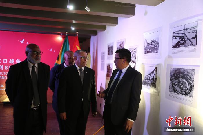 當(dāng)?shù)貢r(shí)間8月15日,中國(guó)駐開(kāi)普敦總領(lǐng)館舉辦紀(jì)念中國(guó)人民抗日戰(zhàn)爭(zhēng)暨世界反法西斯戰(zhàn)爭(zhēng)勝利80周年招待會(huì)。活動(dòng)現(xiàn)場(chǎng)展出60張抗戰(zhàn)歷史圖片。圖為與會(huì)嘉賓參觀圖片展。 中新網(wǎng)記者 孫翔 攝
