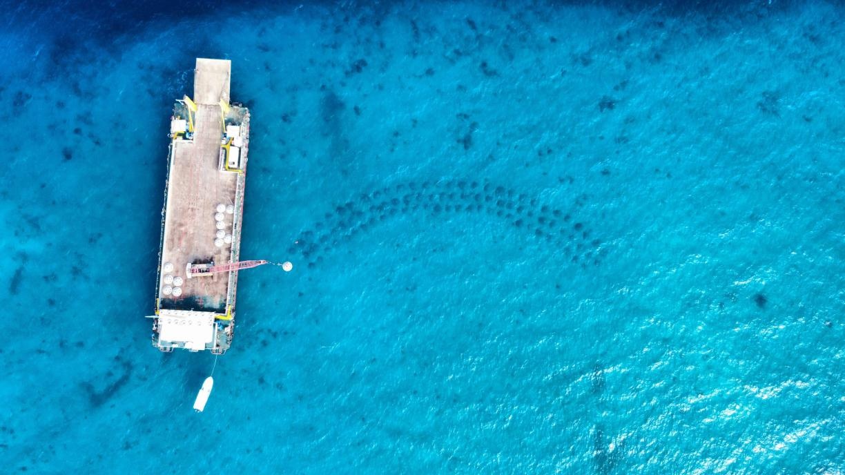 中企在海上安裝“珊瑚小屋”。中國(guó)港灣供圖