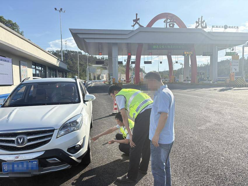 當(dāng)日16:53分,王先生駕駛一輛鄂A牌照的白色小轎車因發(fā)動(dòng)機(jī)突發(fā)故障,無法正常加速,只能低速行駛至大悟北收費(fèi)廣場后停下。車主焦急地在車旁查看情況,不知所措。