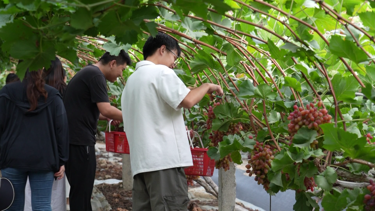 “最初是想打造鄉(xiāng)村、綠化鄉(xiāng)村、美化鄉(xiāng)村,經(jīng)營鄉(xiāng)村得發(fā)展產(chǎn)業(yè),葡萄不僅能帶來經(jīng)濟效益,還能帶動村民務工?!秉S灼初說,如今,附近村民在家門口就能上班,既能增收,又能照顧家庭。