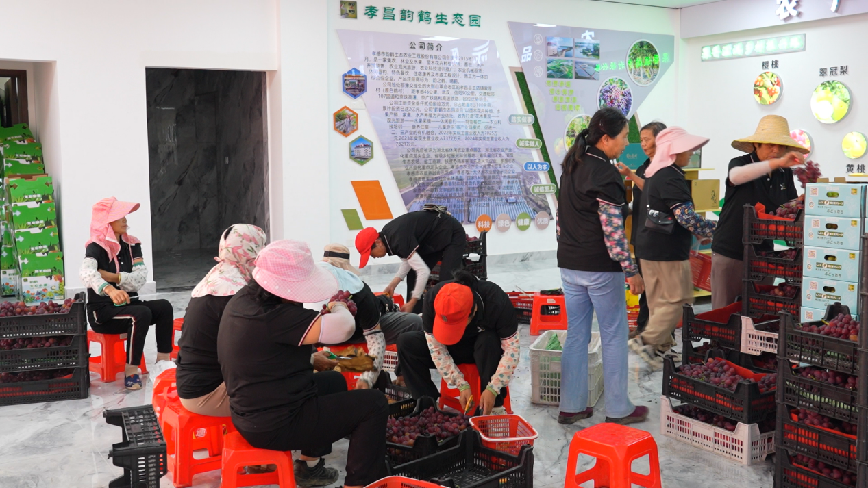 作為華中地區(qū)單體規(guī)模最大的高端葡萄種植園,韻鶴生態(tài)園占地3100畝,如今已成功入選國家3A級景區(qū)。除了葡萄,園區(qū)全年還能采摘草莓、櫻桃、桑葚等水果,配套的餐飲、住宿、游樂園設施一應俱全,每年接待游客超30萬人次。
