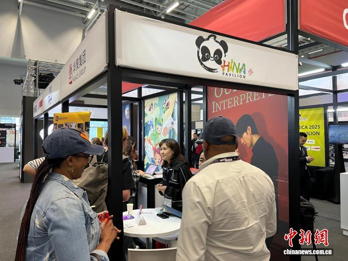 9月1日,南非開普敦,人們在非洲電視節(jié)(MIP Africa)中國聯(lián)合展臺交流?!≈行律缬浾?孫翔 攝