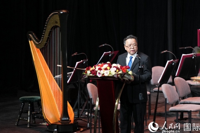 中國(guó)駐菲律賓大使黃溪連在音樂(lè)會(huì)開(kāi)幕式上發(fā)表致辭。人民網(wǎng)記者 樊帆攝