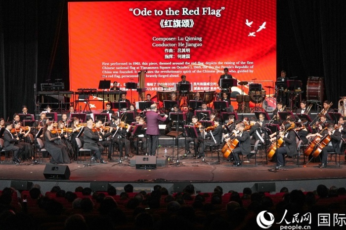 音樂(lè)會(huì)在大氣磅礴的《紅旗頌》中拉開(kāi)帷幕。人民網(wǎng)記者 樊帆攝