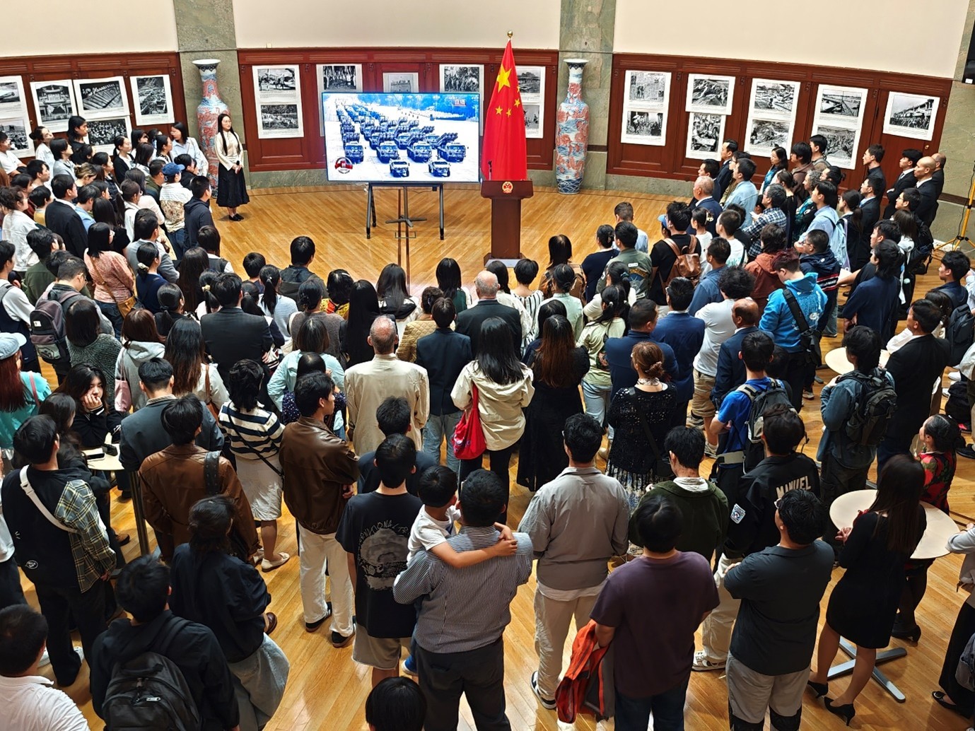隨后,來賓們集體觀看圖片展,回顧日本法西斯侵華的累累罪行,以及這場全民族眾志成城、艱苦卓絕的偉大勝利。大家并共同觀看了“9·3”閱兵精彩片段,對剛毅威武的人民之師,集中亮相的新武器新裝備贊不絕口,表示新時代人民軍隊(duì)完全有信心、有能力維護(hù)國家獨(dú)立自由,維護(hù)世界和平安寧。