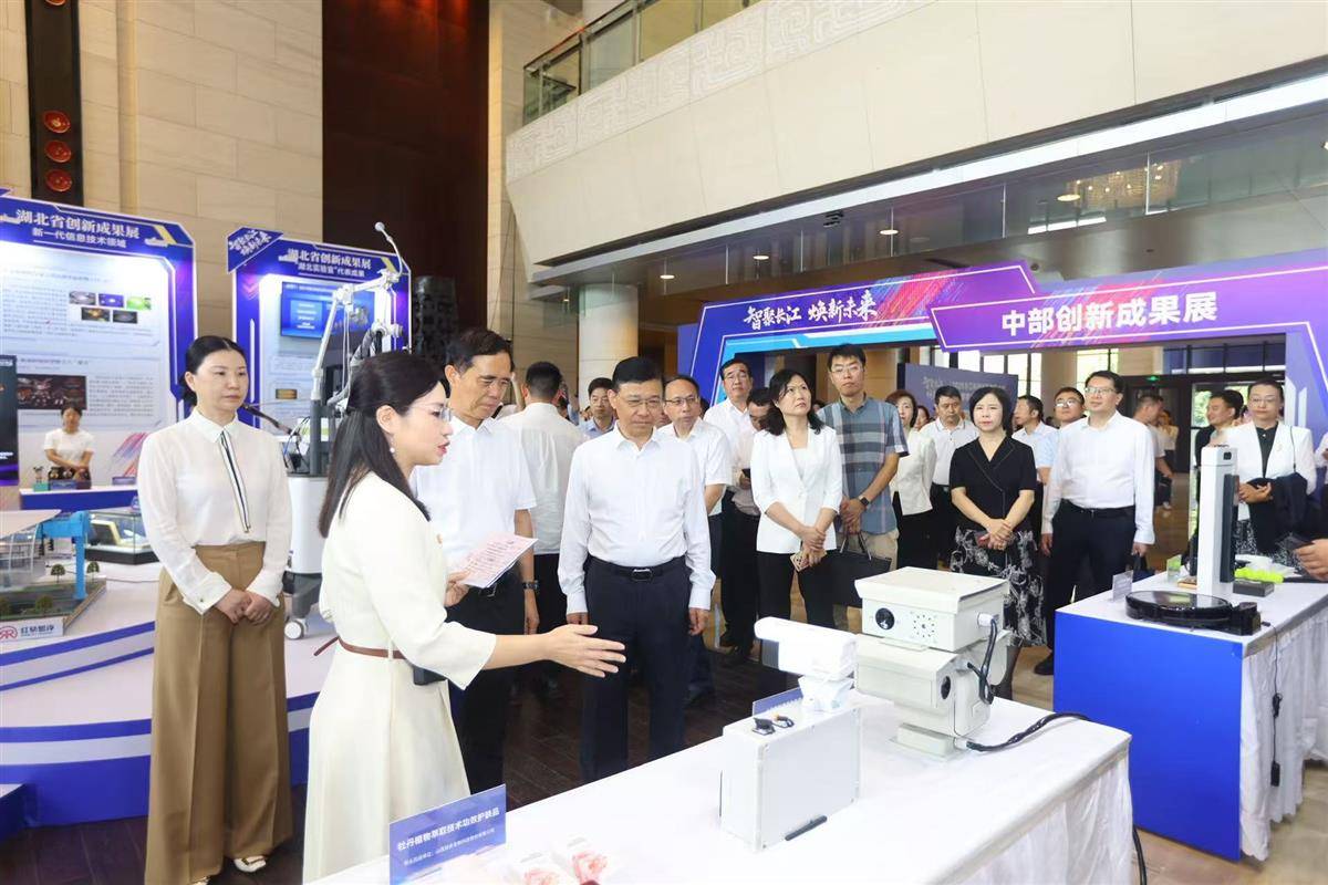 歷經(jīng)一個半月,通過征集、遴選,六省精選成果齊亮相。成果展以“智聚長江、煥新未來”為主題,共設(shè)三個展區(qū),展示了近80件科技成果實物。結(jié)合展板圖文介紹、視頻生動闡述、團隊專人講解、現(xiàn)場互動演示等方式,全面呈現(xiàn)了各省在基礎(chǔ)研究、技術(shù)研發(fā)、產(chǎn)品升級、成果轉(zhuǎn)化等方面的突破與進展。既有全球首個原創(chuàng)設(shè)備,又有實現(xiàn)國產(chǎn)替代的關(guān)鍵技術(shù),更有貼近市場需求的創(chuàng)新產(chǎn)品,這些科研成果已應(yīng)用在航空航天、交通運輸、信息技術(shù)、生物醫(yī)藥等產(chǎn)業(yè)領(lǐng)域,充分彰顯了中部地區(qū)的創(chuàng)新實力和發(fā)展?jié)摿?,為參會嘉賓帶來一場別開生面、內(nèi)涵豐富的“科技盛宴”。