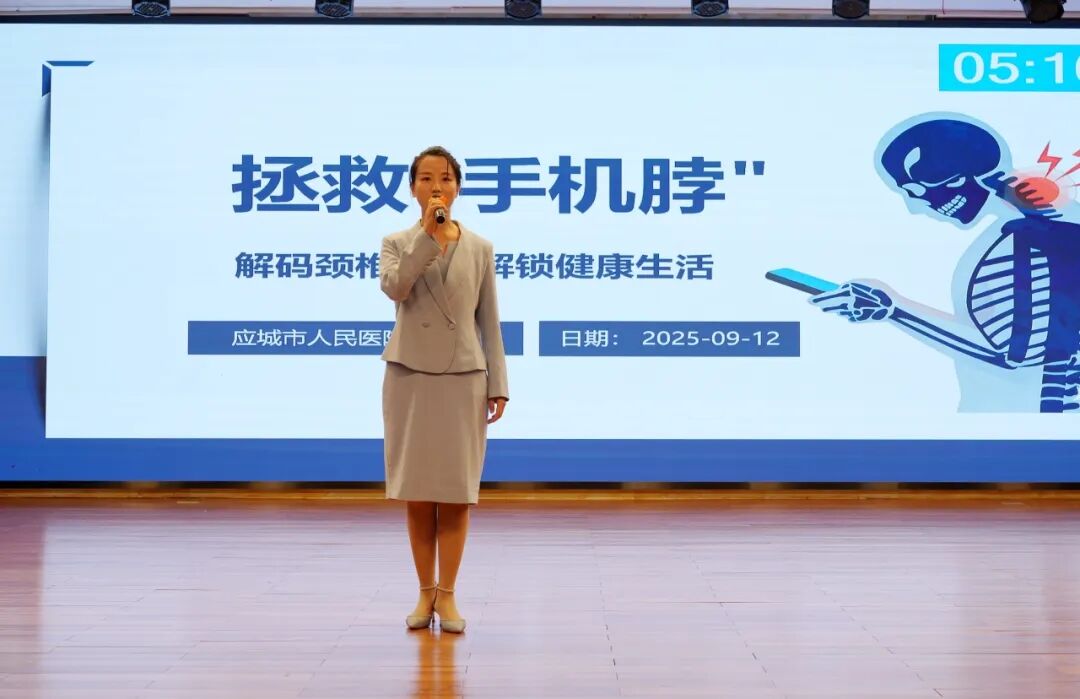 孝感市中心醫(yī)院副院長張海燕在健康科普大賽上進行致辭,經(jīng)過前期預賽,18位來自各醫(yī)聯(lián)體成員單位的參賽代表同臺競技,圍繞慢性病管理、急救常識、婦幼健康、老年健康等群眾關切的健康話題開展了科普宣講。