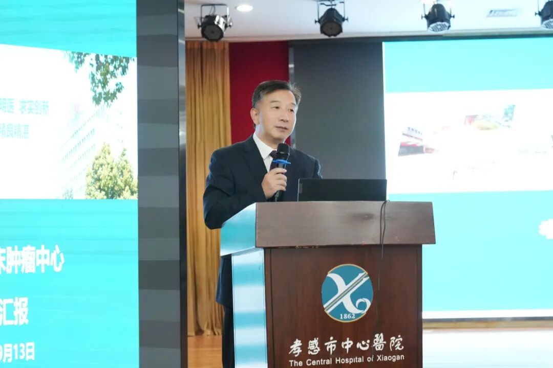 報告環(huán)節(jié)由市中心醫(yī)院副院長胡超華主持,聚焦政策解讀與實踐分享。市醫(yī)療保障局黨組成員、副局長魏其義,市衛(wèi)生健康委黨組成員、副主任胡偉清,市中心醫(yī)院院長謝志斌分別就孝感市落實三明醫(yī)改相關醫(yī)保政策、孝感市深化分級診療的生動實踐和孝感市中心醫(yī)院五大資源中心創(chuàng)建等內容進行了介紹。孝感市分子診斷中心、孝感市腫瘤臨床中心、孝感市公共衛(wèi)生臨床中心、孝感市數(shù)智化病理診斷中心的相關負責人依次在會上就各中心建設情況進行了匯報。
