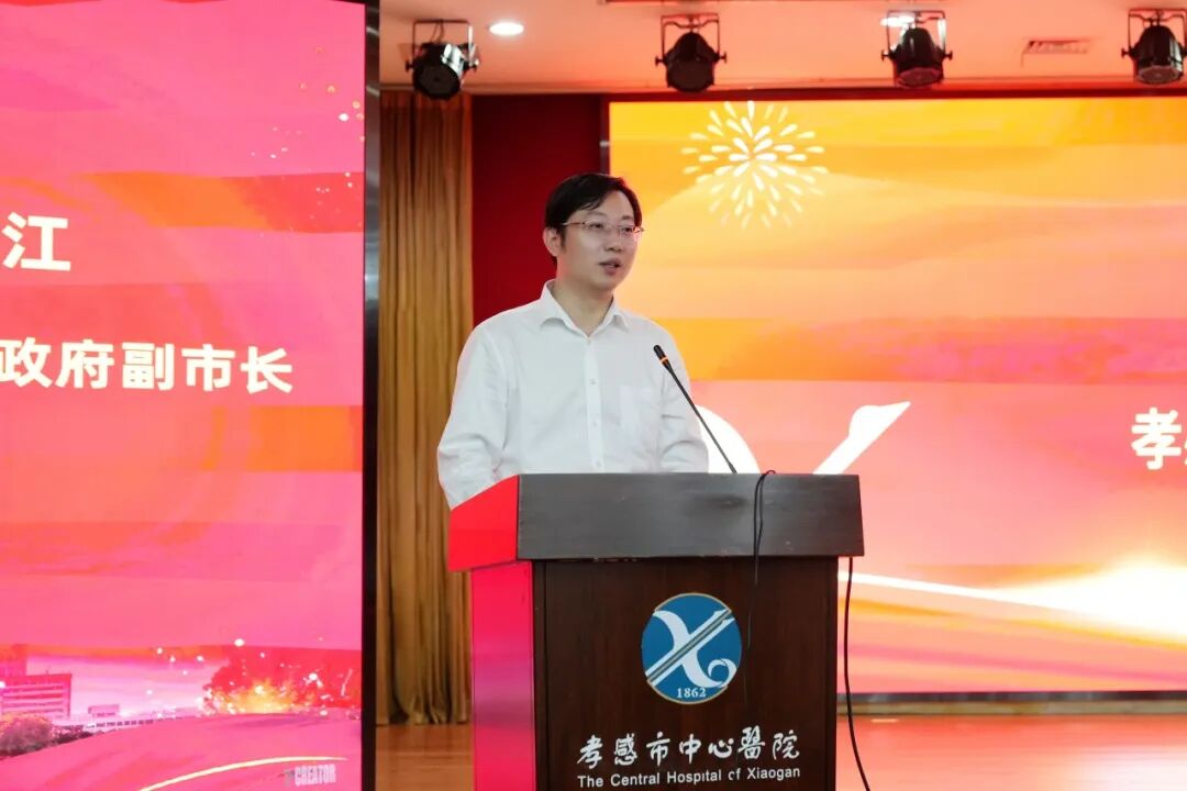 開幕式上,孝感市人民政府副市長朱江,市衛(wèi)生健康委黨組書記、主任夏軍,市醫(yī)療保障局黨組書記、局長梅郁芬,孝感市中心醫(yī)院黨委書記吳克松分別進行了致辭。孝感市中心醫(yī)院院長謝志斌主持會議。
