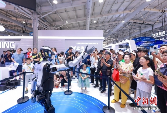 9月14日,觀眾觀看機(jī)器人舞蹈表演。當(dāng)日,2025年中國國際服務(wù)貿(mào)易交易會在北京落下帷幕。中新社記者 賈天勇 攝
