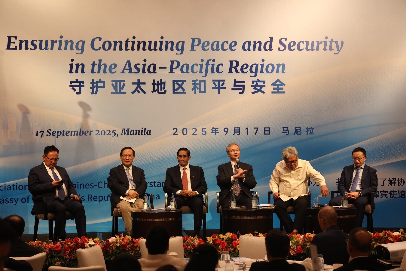 中國駐菲律賓大使黃溪連在致辭中回顧中方成功舉辦上海合作組織天津峰會和紀(jì)念中國人民抗日戰(zhàn)爭暨世界反法西斯戰(zhàn)爭勝利80周年大會的重要成果,宣介全球治理倡議的核心內(nèi)容和重要意義,表示中國將繼續(xù)同周邊各國一道,以和平、合作、開放、包容的亞洲價值觀,堅(jiān)決捍衛(wèi)國際公平正義,堅(jiān)定做動蕩世界中的穩(wěn)定力量。黃溪連并提出兩個問題鼓勵與會嘉賓深入思考、熱烈討論:在以國際法為基礎(chǔ)的國際秩序和基于規(guī)則的國際秩序之間,什么才是亞太地區(qū)人民真正需要的國際秩序?在個別國家試圖推動亞太“北約化”的背景下,亞太地區(qū)究竟應(yīng)該建立什么樣的安全體系?