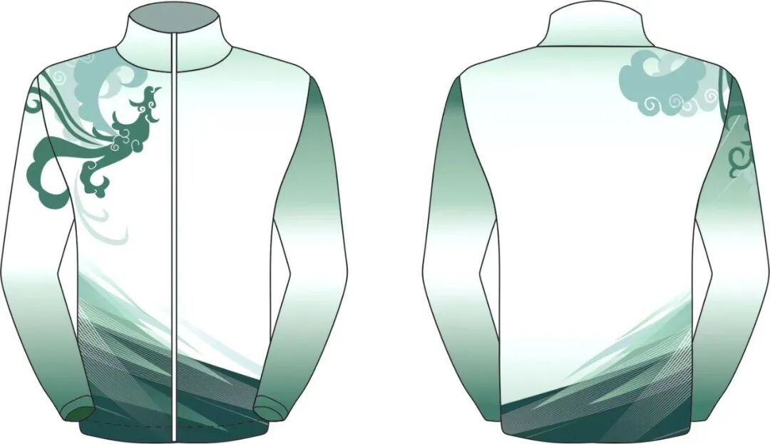 以白色為基色,運用淺綠、翠綠、墨綠不同層次的綠色,呈現(xiàn)鳳鳥“展翅騰飛” 的視覺遞進感。展現(xiàn)了楚文化的獨特精神內涵,寓意湖北的繁榮昌盛、技能騰飛的美好未來。