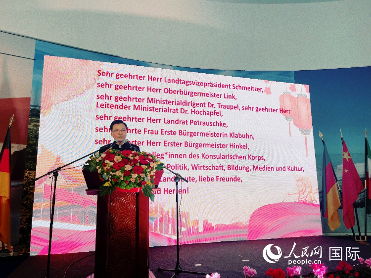 中國駐杜塞爾多夫總領(lǐng)事余勇致辭。人民網(wǎng)記者 劉赫攝