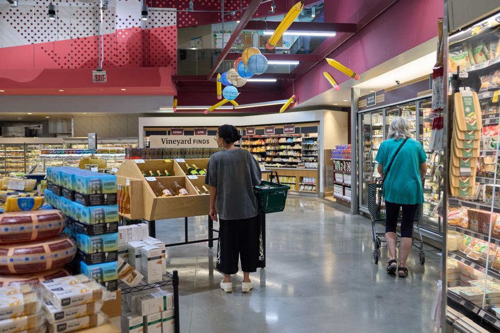 8月12日,顧客在美國洛杉磯的一家超市選購日常用品。新華社/歐新
