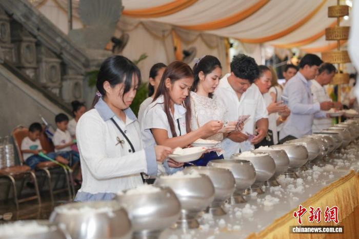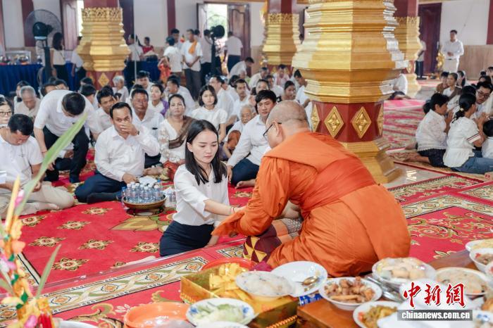 中新社記者日前受邀體驗(yàn)柬埔寨亡人節(jié)傳統(tǒng)習(xí)俗。在金邊1號公路的一座寺廟里,人們帶著鮮花、蠟燭、香火以及各色供品前來布施禮佛,寺廟里的誦經(jīng)聲從凌晨4時到中午12時延綿不絕。人們或席地而坐,虔誠聆聽僧侶誦經(jīng),或排成長龍有序布施。