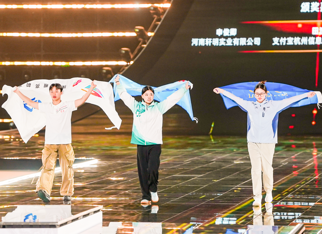 閉幕式圍繞《逐夢同行 技行人生》《強(qiáng)國同行 技創(chuàng)未來》《世界同行 技無國界》3個篇章進(jìn)行了現(xiàn)場表演。來自全國各行業(yè)的中華技能大獎獲得者、勞動模范、全國技術(shù)能手、世賽冠軍、大賽合作伙伴代表等作為嘉賓,為本屆大賽獲得金、銀、銅牌348名選手頒獎?,F(xiàn)場公布了參賽團(tuán)最佳選手獎、西部技能之星和大賽突出貢獻(xiàn)獎、優(yōu)秀組織獎獲獎名單。