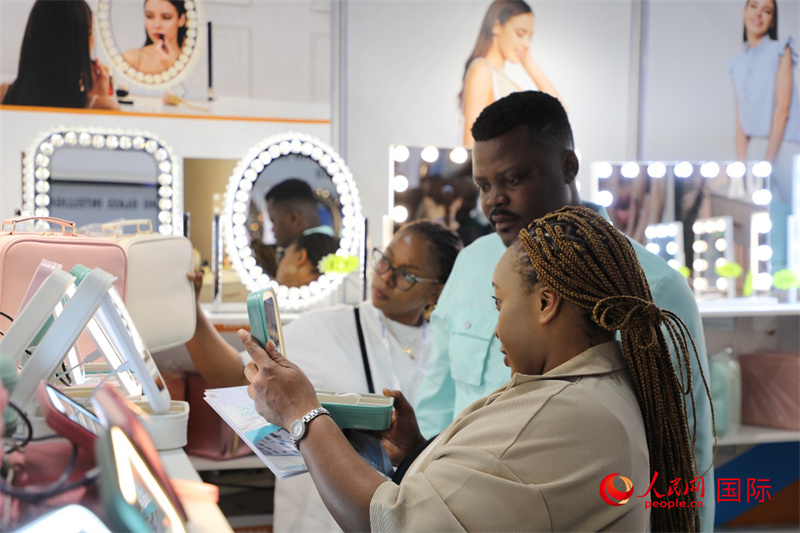 在第九屆中南貿(mào)易博覽會上,參觀者在體驗(yàn)中國化妝鏡產(chǎn)品。人民網(wǎng)記者 戴楷然攝