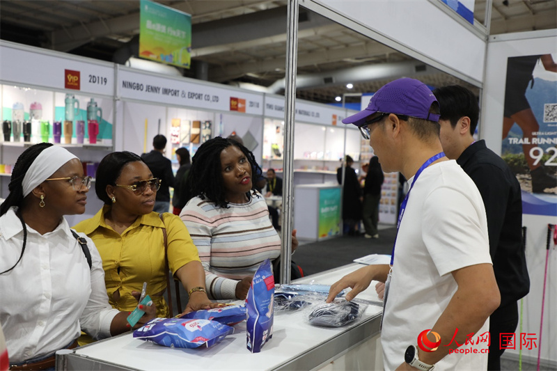 在第九屆中南貿(mào)易博覽會上,參觀者與中國展商交流。人民網(wǎng)記者 戴楷然攝
