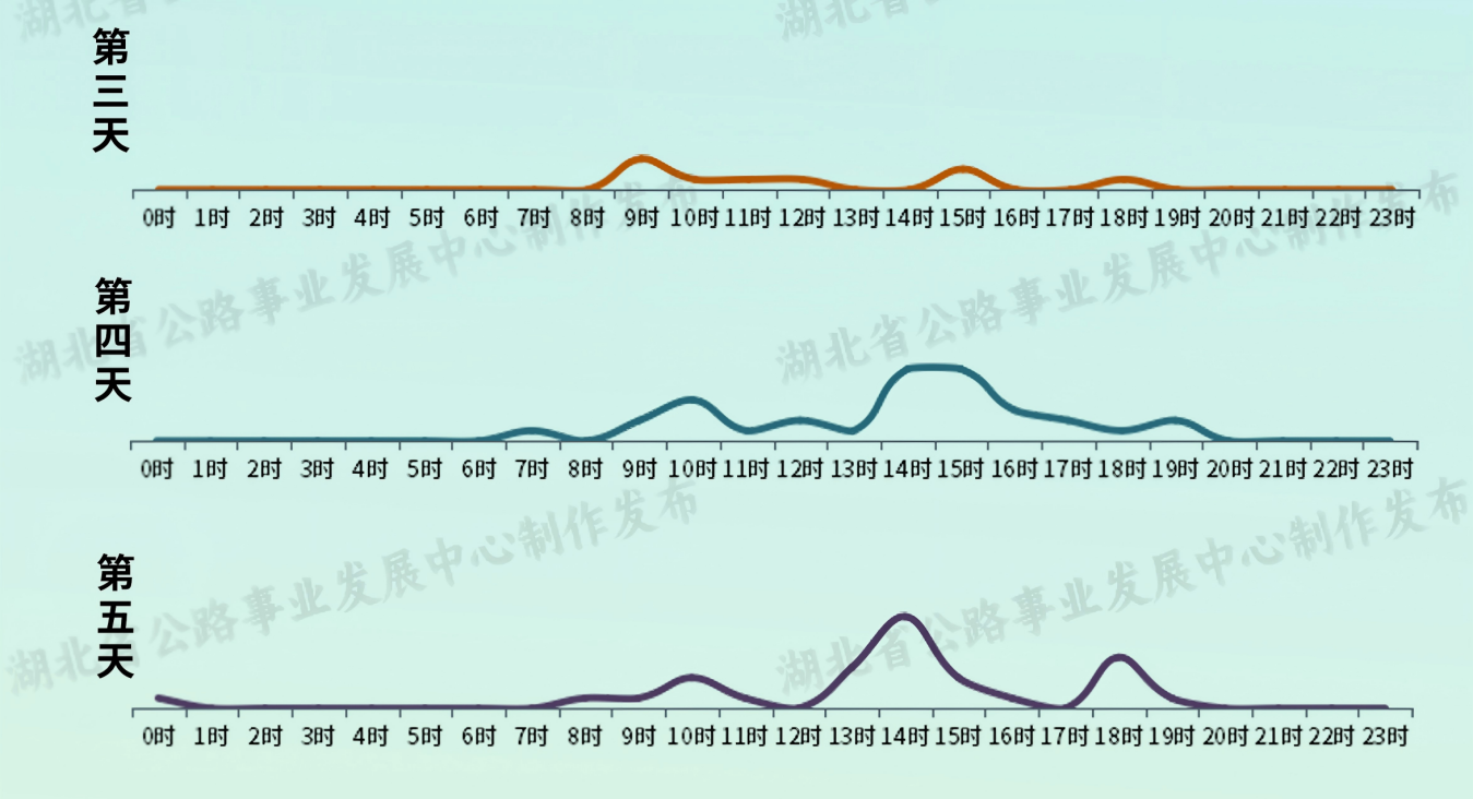 10月1日至2日(假期第1天至第2天),預(yù)計該兩日7時至14時路網(wǎng)較為繁忙,其中10月1日8時至11時左右出現(xiàn)假期出程高峰。