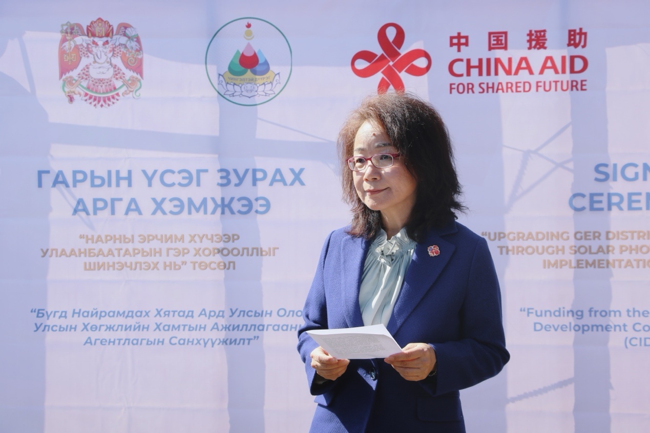 沈敏娟在致辭中說,烏蘭巴托蒙古包區(qū)光伏系統(tǒng)改造項目完成后,500戶家庭將受益。這體現(xiàn)了中方的共同發(fā)展理念。中國提出構(gòu)建人類命運(yùn)共同體理念,堅持親誠惠容的周邊外交政策,借助技術(shù)和規(guī)模優(yōu)勢推動綠色能源轉(zhuǎn)型,顯著提升了清潔能源在全球范圍的可及性,今天的項目就是一個很好的例證。