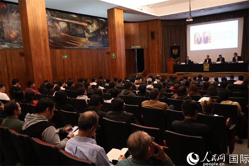 人民網(wǎng)墨西哥城9月24日電 (記者謝佳寧)9月24日,中國駐墨西哥大使陳道江應(yīng)邀為墨國立自治大學(xué)200余名師生作專題講座,介紹全球背景下中墨關(guān)系、中拉關(guān)系。墨國立自治大學(xué)中墨研究中心主任杜塞爾、經(jīng)濟系主任羅德里格斯陪同。