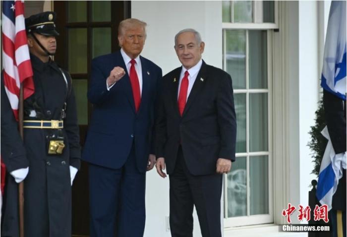 資料圖:當(dāng)?shù)貢r(shí)間2025年4月7日,美國總統(tǒng)特朗普與以色列總理內(nèi)塔尼亞胡在華盛頓白宮會晤。中新社記者 陳孟統(tǒng) 攝