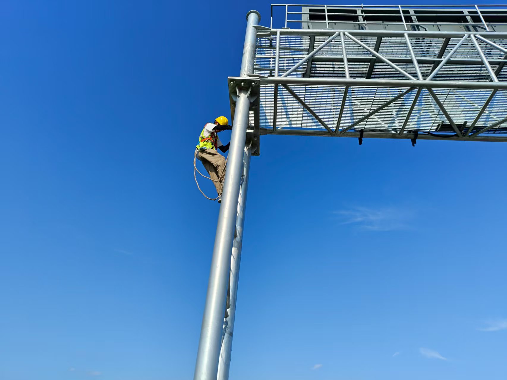 ETC門架、機(jī)電設(shè)施是高速運(yùn)營的“神經(jīng)中樞”,直接關(guān)系道路通行效率。9月下旬,機(jī)電管理員彭龍系緊安全繩,順著檢修梯爬上孝漢應(yīng)高速ETC門架,手持檢測儀逐項(xiàng)排查網(wǎng)絡(luò)信號、設(shè)備運(yùn)行狀態(tài)?!岸嗖橐淮?,雙節(jié)通行就多一份保障?!彼林~頭的汗說,僅3天時間,團(tuán)隊(duì)已完成轄區(qū)內(nèi)20余座門架的全面檢查維護(hù)。