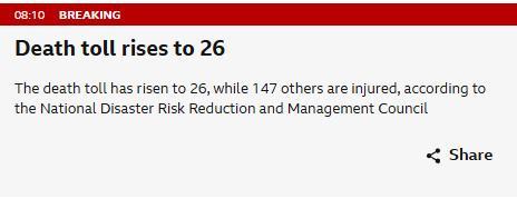 中新網(wǎng)10月1日電 據(jù)英國廣播公司(BBC)等外媒報道,菲律賓國家減災管理委員會稱,截至當?shù)貢r間10月1日8時,9月30日發(fā)生在該國宿務省的6.9級地震已造成26人死亡、147人受傷,2個市鎮(zhèn)已經(jīng)宣布進入災難狀態(tài)。