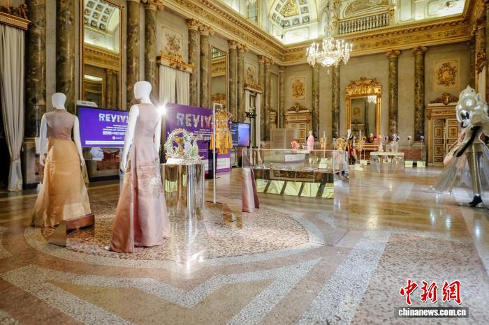 圖為“相逢·宴會”展區(qū),以“開放與包容”為基調(diào),通過服飾、珠寶與數(shù)字藝術作品,重現(xiàn)文明相遇的璀璨時刻。展覽主辦方 供圖