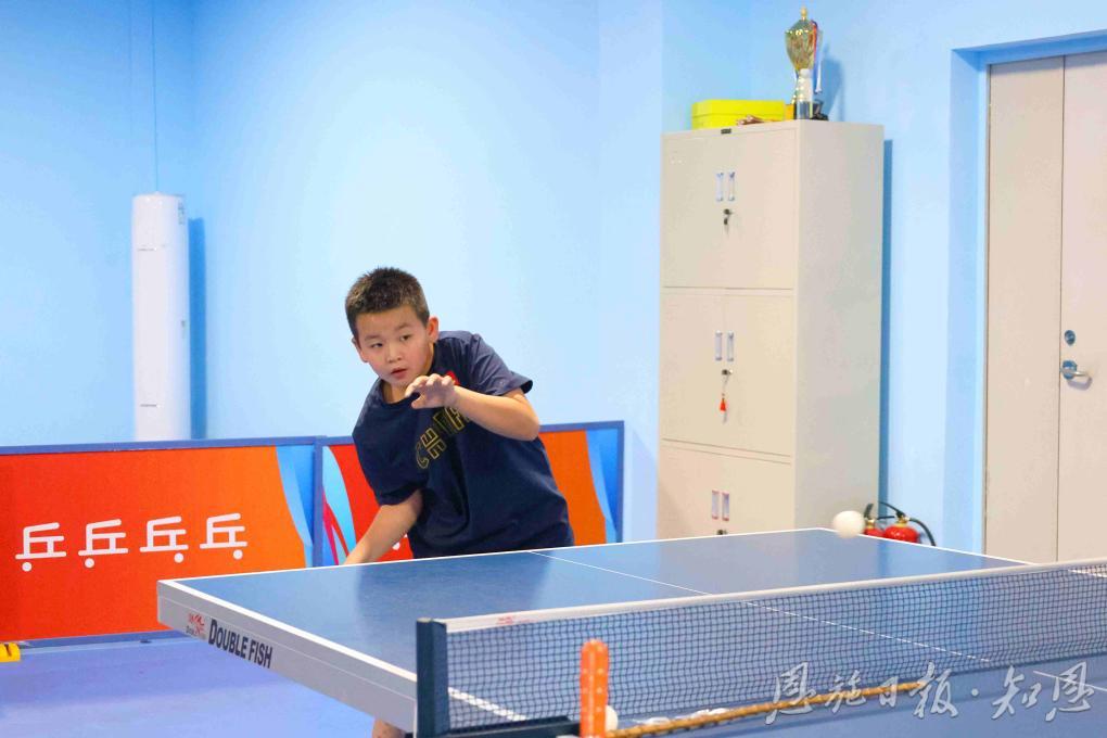 黃宇澤正在進(jìn)行乒乓球訓(xùn)練。(全媒體記者盧樹彬 攝)