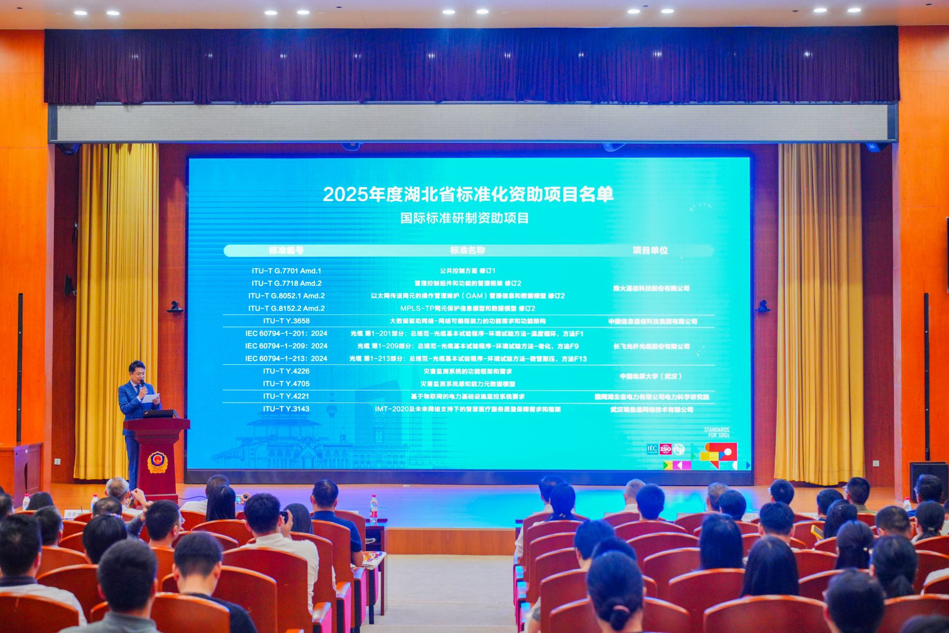 活動現(xiàn)場還公布了2025年度湖北省標準化資助項目名單,共有10項國際標準、25項國家標準、85項省級地方標準和25個省級專業(yè)標準化技術(shù)組織項目獲得資助,涵蓋高端制造、綠色能源、數(shù)字經(jīng)濟、公共服務等多個重點領(lǐng)域。