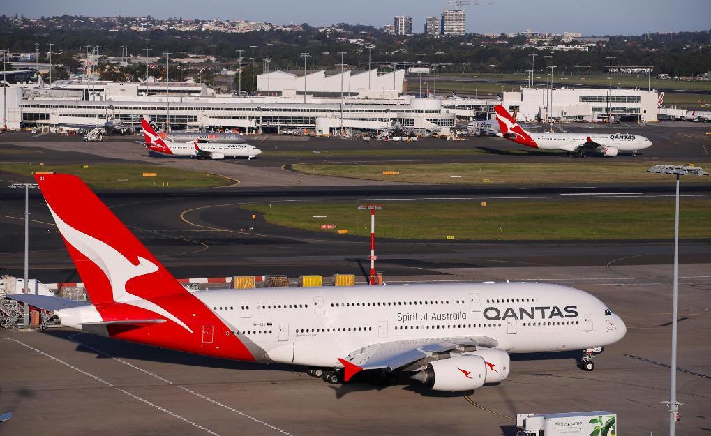 2020年3月18日,多架澳洲航空客機(jī)停泊在澳大利亞悉尼機(jī)場(chǎng)。新華社記者白雪飛攝
