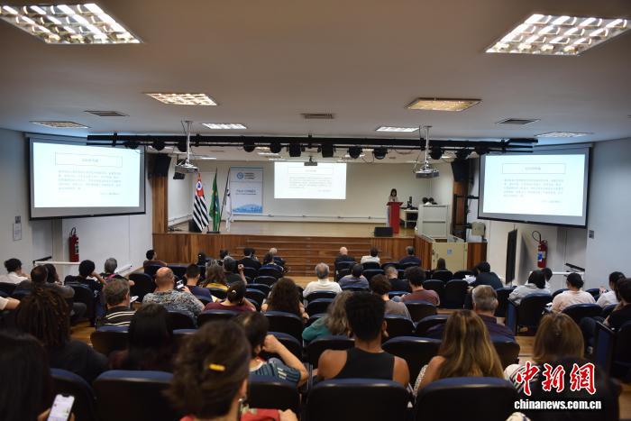 當(dāng)?shù)貢r(shí)間10月17日晚,作為“魯迅的文藝道路——不隔膜,相關(guān)心”展覽配套活動(dòng),北京魯迅博物館研究人員李紫璇在巴西圣保羅州立大學(xué)孔子學(xué)院開(kāi)講魯迅作品。中新社記者 林春茵 攝