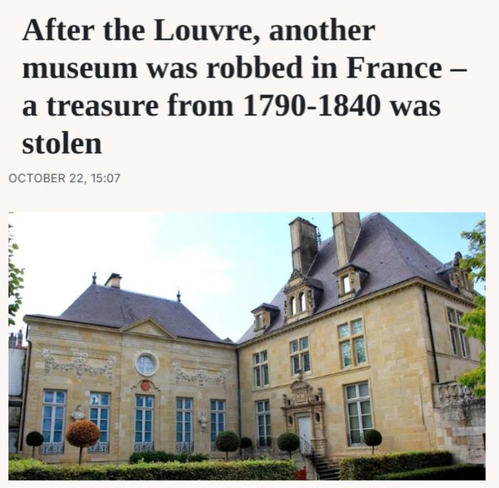 中新網(wǎng)10月23日電 據(jù)外媒當(dāng)?shù)貢r間22日報道,在巴黎盧浮宮博物館發(fā)生搶劫案后不久,法國另一家小型博物館失竊,約2000枚金幣和銀幣被盜。事發(fā)后該博物館暫時關(guān)閉。