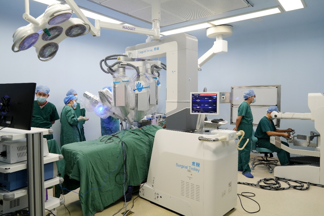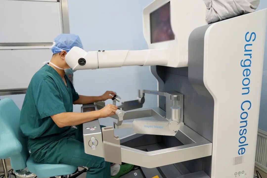 10月13日,在麻醉科、手術(shù)室等多學(xué)科團(tuán)隊(duì)的緊密配合下,小兒外科楊坤主任帶領(lǐng)手術(shù)團(tuán)隊(duì)正式開展手術(shù)。手術(shù)僅在患兒臍部作一個(gè)2厘米的微小切口,將機(jī)器人機(jī)械臂伸入腹腔。在楊坤主任的精準(zhǔn)操控下,靈活的機(jī)械臂在腹腔內(nèi)完成分離、切除狹窄部位、精準(zhǔn)吻合等一系列復(fù)雜操作。整個(gè)手術(shù)過程幾乎零出血,充分彰顯了機(jī)器人手術(shù)的微創(chuàng)優(yōu)勢(shì)。