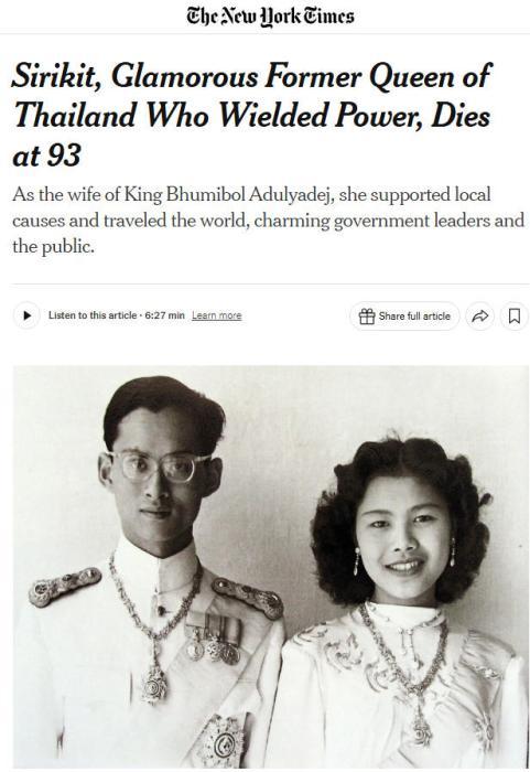 報(bào)道稱,詩(shī)麗吉是泰國(guó)先王普密蓬·阿杜德的王后,也是現(xiàn)任國(guó)王瑪哈·哇集拉隆功的母親。