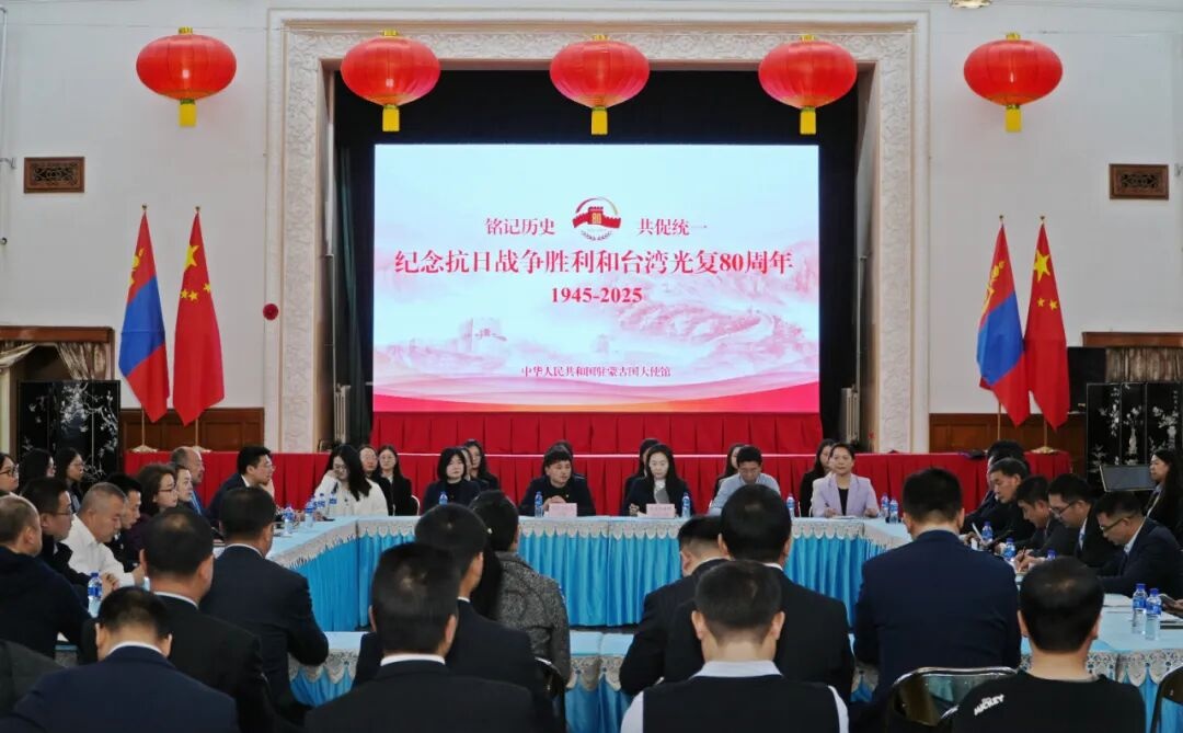 人民網(wǎng)北京10月25日電 (記者張朋輝)烏蘭巴托消息:23日,中國駐蒙古國使館舉辦“銘記歷史·共促統(tǒng)一”—紀(jì)念臺灣光復(fù)80周年座談會,旅蒙華僑華人、中資機(jī)構(gòu)、志愿者教師和留學(xué)生代表100余人參加。