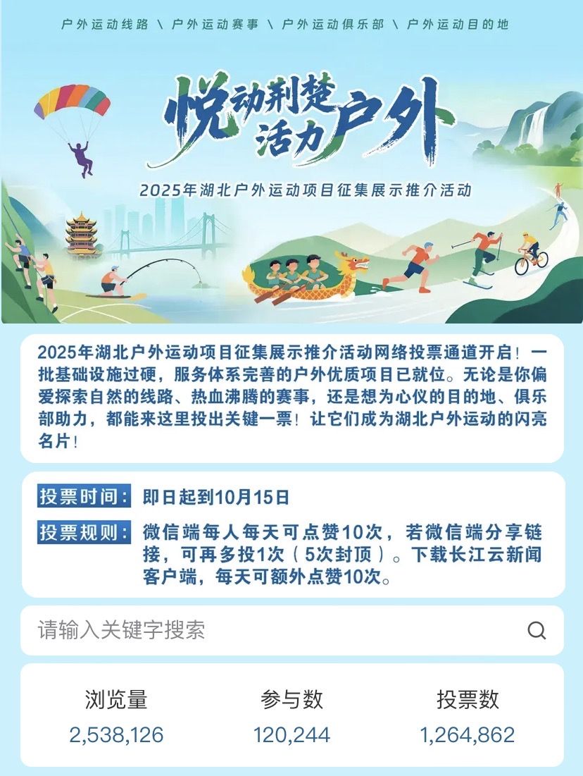 從神農架的高山徒步秘境,到恩施地心谷的峽谷穿越;從宜昌百里荒的云端露營,到武漢東湖的水上運動集群……這批項目覆蓋“山、水、陸、空、雪”全領域,共同打造全民戶外運動活力區(qū),激活消費潛力、賦能產業(yè)升級,串聯起湖北“一江兩山、千湖之省”的生態(tài)基底。