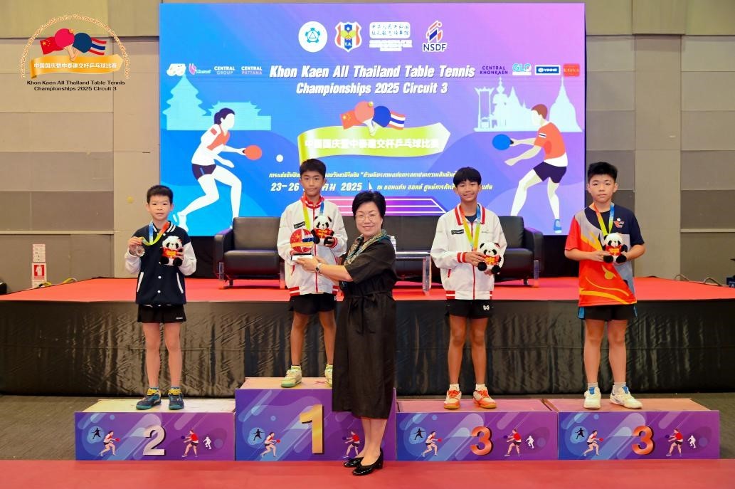 人民網(wǎng)曼谷10月29日電 (記者孫廣勇)10月23日至26日,由中國駐孔敬總領館與泰國乒乓球協(xié)會、孔敬公立華僑學校聯(lián)合主辦的全泰四星級乒乓球賽“中國國慶暨中泰建交杯乒乓球比賽”圓滿落下帷幕。