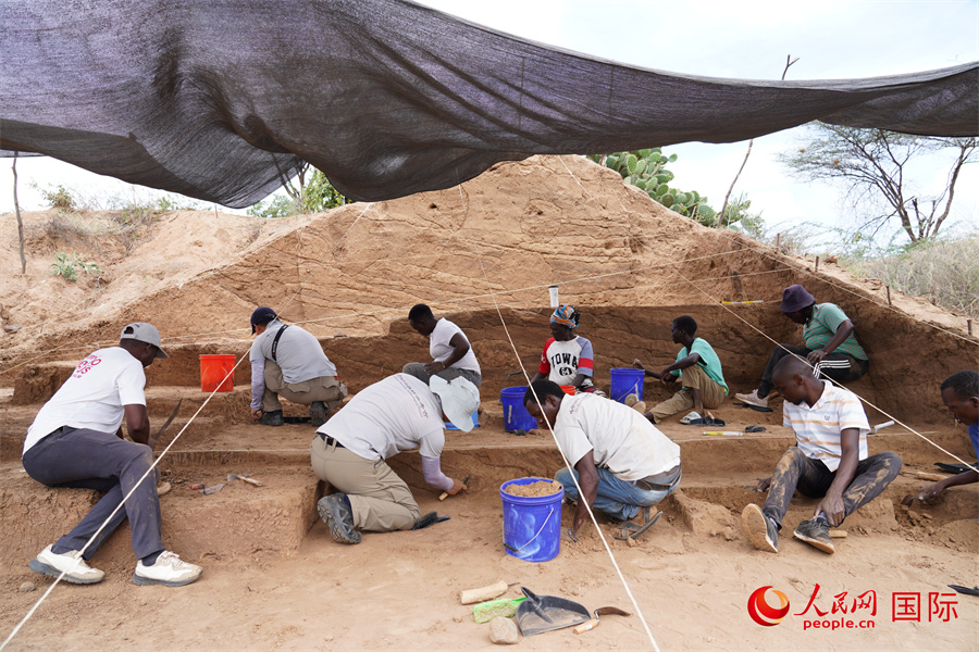 肯尼亞博戈里亞湖遺址第10地點(diǎn)發(fā)掘現(xiàn)場。人民網(wǎng)記者 黃煒鑫攝