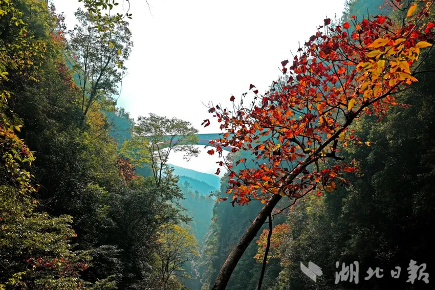 秋光正好,蝶舞清江·地心谷景區(qū)進入一年中最富詩意的季節(jié)。峽谷兩岸層林盡染,赭紅、金黃與墨綠交織,構(gòu)成一幅流動的山水長卷。谷內(nèi)溫度宜人,溪流清冽,瀑布飛懸,空氣中富含負氧離子,是放松身心、親近自然的絕佳場所。