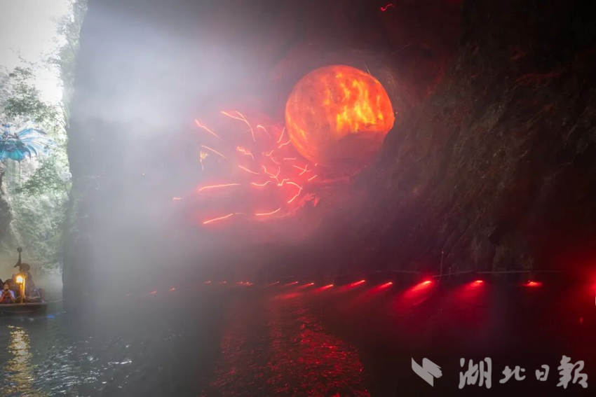 地心奇航游船:乘游船,緩緩駛?cè)雿{谷,在光影交錯中探秘喀斯特奇觀。沿途水聲清越,宛如置身科幻秘境,開啟一段充滿想象力的地心穿越之旅。