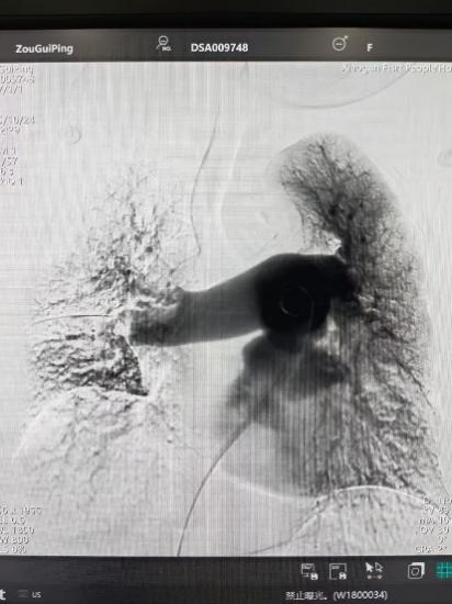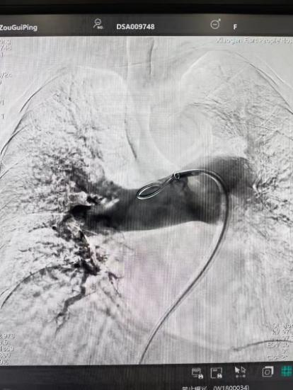 面對(duì)危急的病情,介入血管科團(tuán)隊(duì)在黃遷祥的帶領(lǐng)下,對(duì)患者病情進(jìn)行充分評(píng)估和綜合研判后,最終制定了 “肺動(dòng)脈抽栓 + 局部溶栓藥物灌注 + 下腔靜脈濾器置入術(shù)” 的微創(chuàng)介入治療方案。
