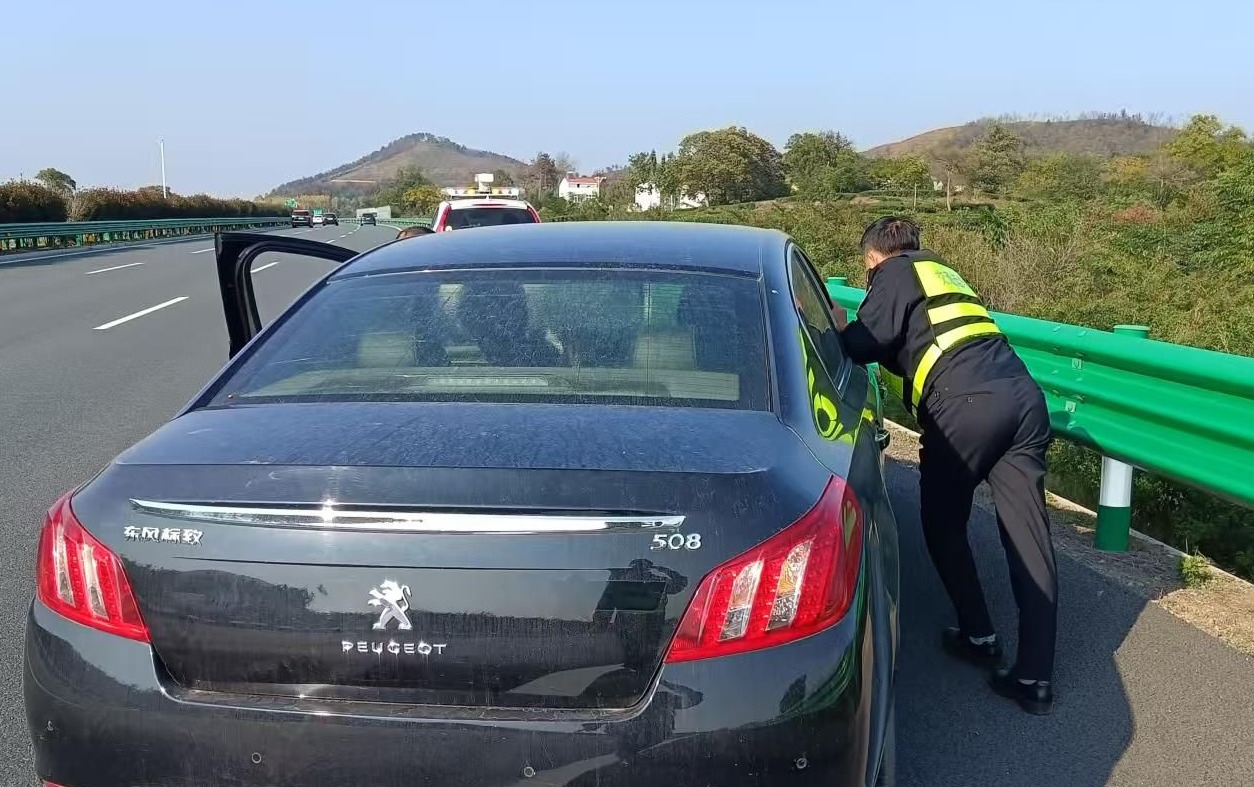 此時車輛完全失去動力,無法前進(jìn)分毫,且車上只有他一個人。他嘗試獨自推車,而他一個人又怎么能推得動一輛小轎車,武大高速過往車輛密集,高速行駛的車流從故障車旁呼嘯而過,稍有不慎就可能引發(fā)追尾事故,險象環(huán)生。