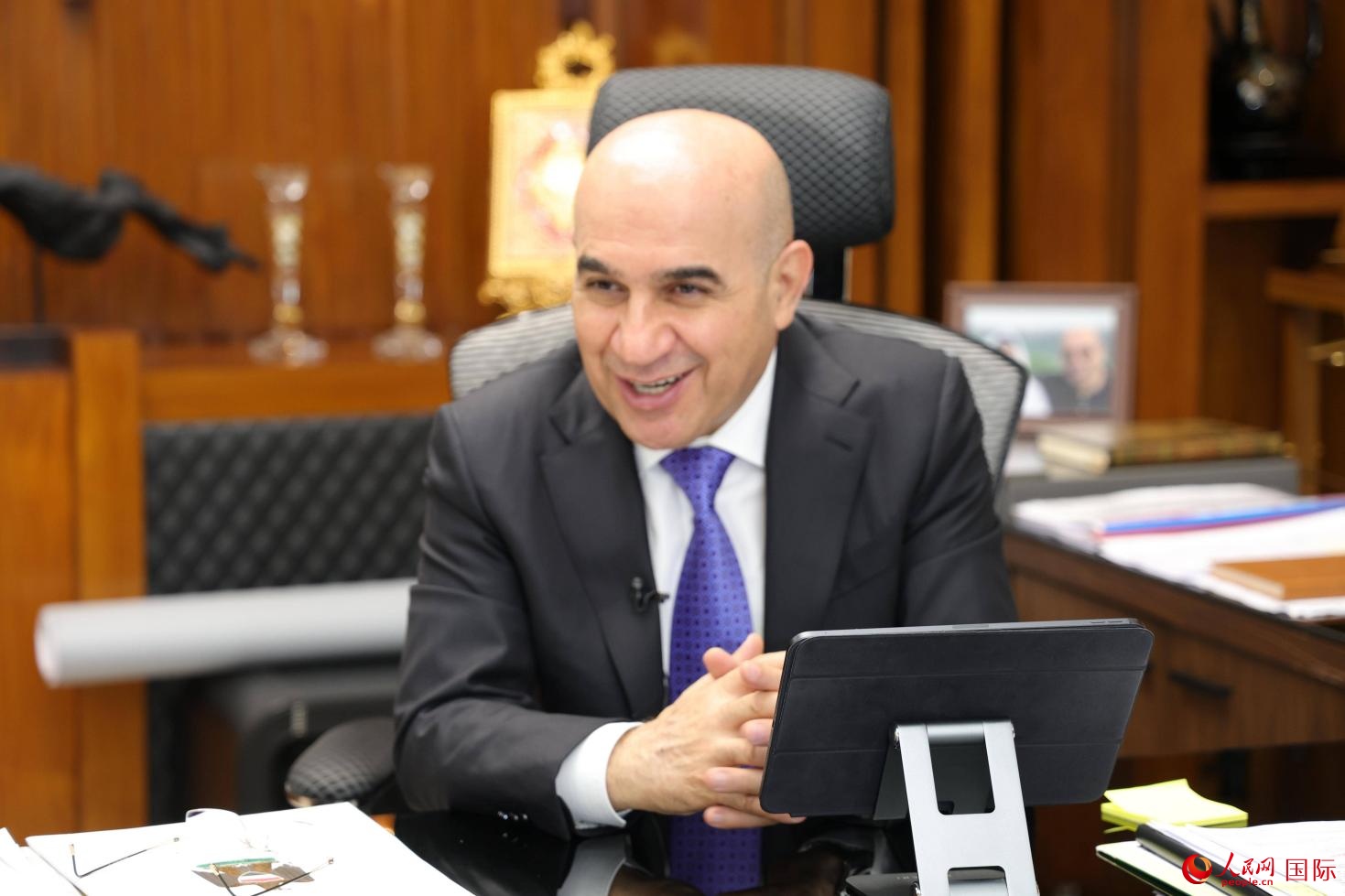 伊拉克住建部部長(zhǎng)雷卡尼接受采訪。人民網(wǎng) 伊納斯·易卜拉欣攝