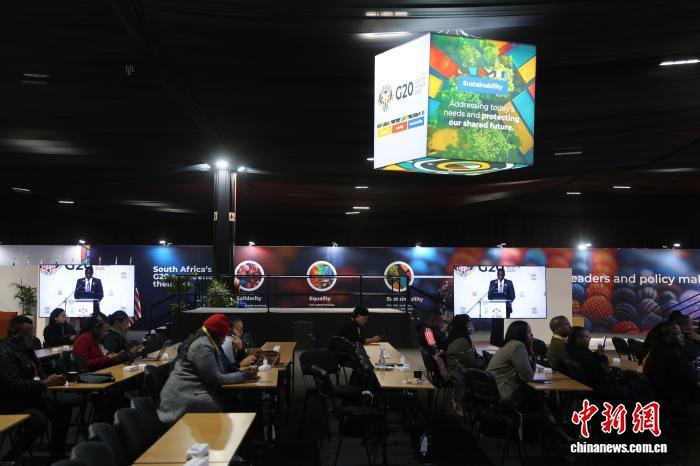 當?shù)貢r間11月17日,南非在約翰內(nèi)斯堡展覽中心(NASREC)召開媒體簡報會,介紹二十國集團(G20)領導人峰會籌備進展?!≈行律缬浾?孫翔 攝