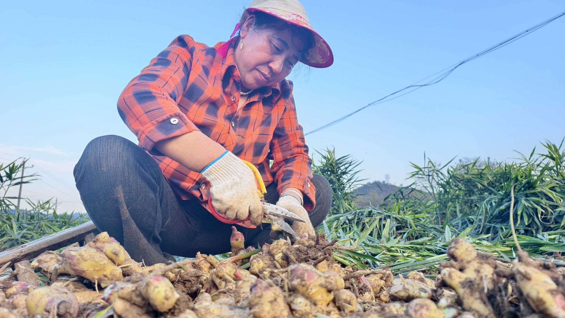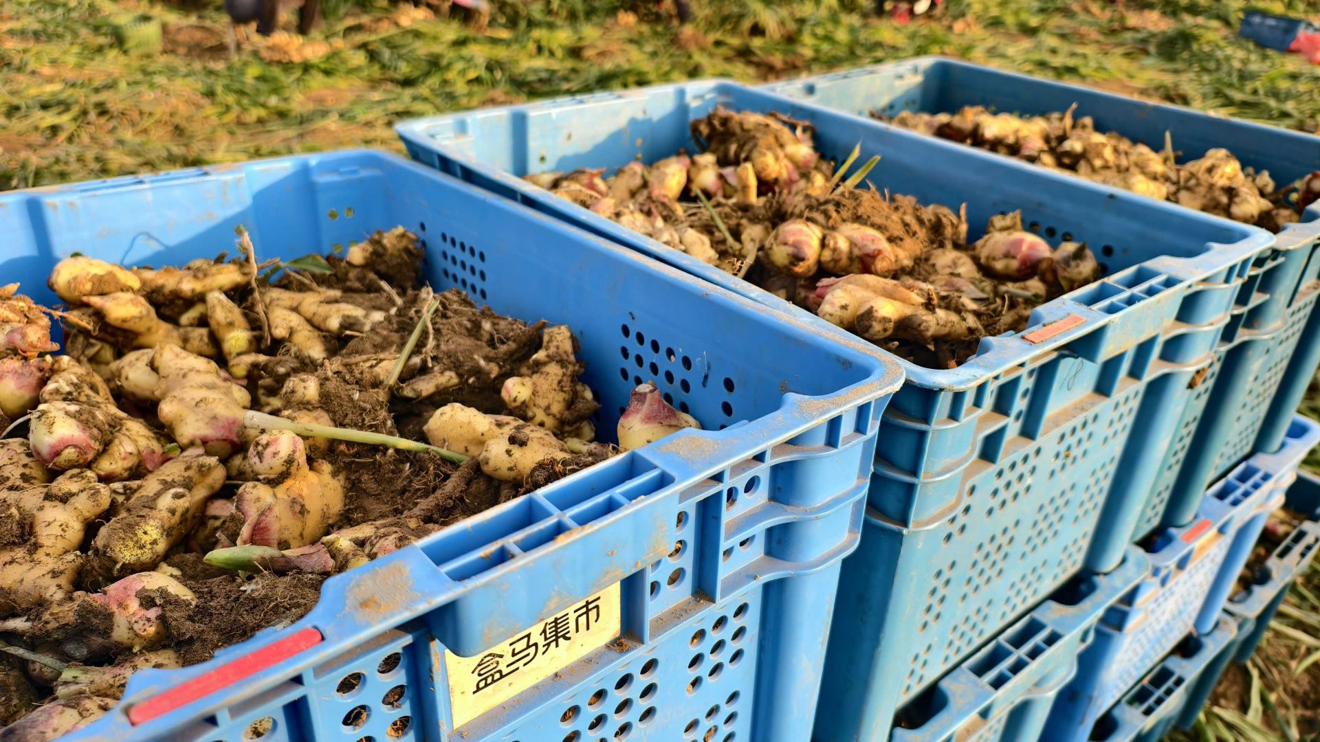 “我家在紅寨村,騎車過來10分鐘,一天能掙100塊錢,還不耽誤照顧老人孩子?!闭诜謷拇迕穸」鹈愤呎f邊利落地將姜塊裝筐。