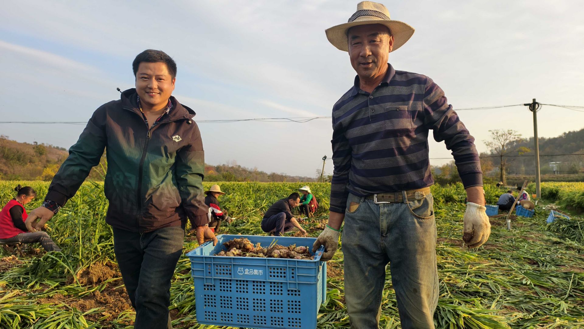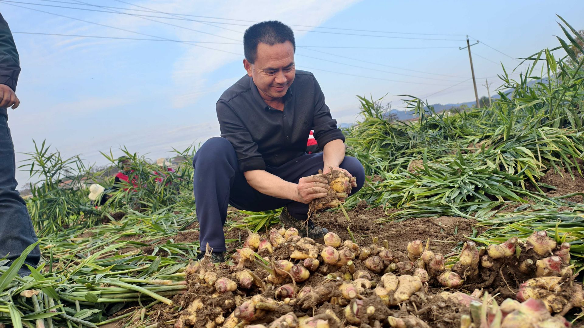 成片的姜田郁郁蔥蔥,出姜機(jī)轟隆作響,40余名村民穿梭其間,有條不紊地分揀、裝筐,臉上洋溢著豐收的喜悅。